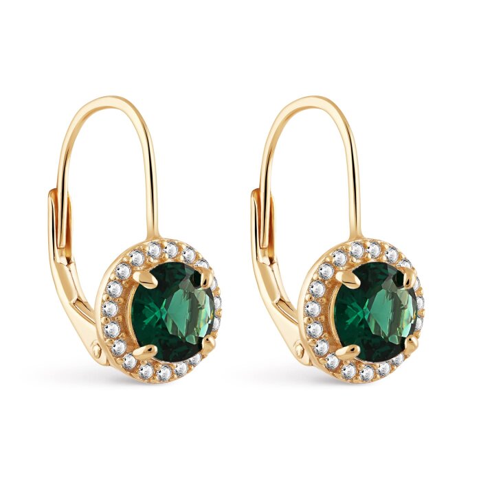 Srebrne naušnice Zeleni krug blistavosti pozlata